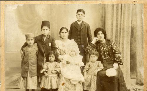 משפחת ג’יניאו. יושבת במרכז – תמר, אשת בכור שלום ג’יניאו (נפטרה ב-1943). ארכיון הספרייה הלאומית.