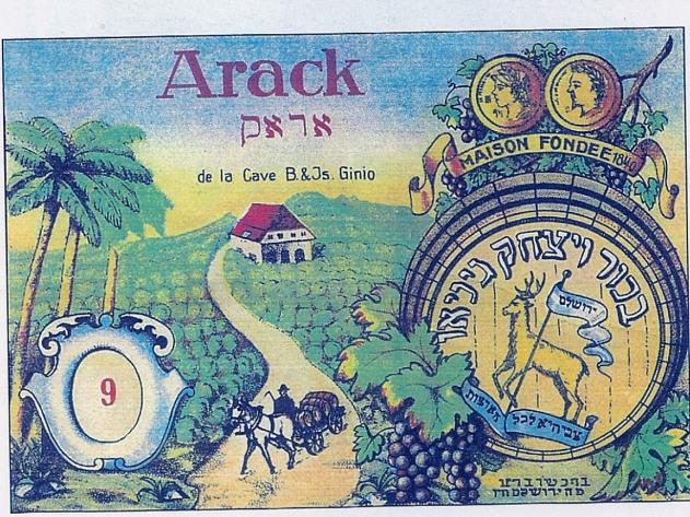 תווית בקבוק ערק, באדיבות מוזאון חצר היישוב הישן.