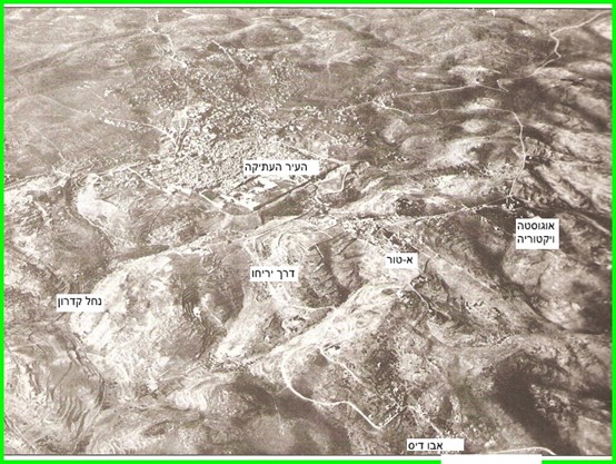 מבט מירושלים מזרחה, בתצלום אווירי של הצבא הבריטי, 1918.