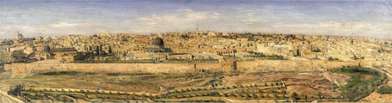 לודוויג בלום, העיר העתיקה והר הבית. מתוך: אוסף יואל אמיר, יד יצחק בן צבי (ישראל נגלית לעין).