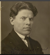 תצלום דיוקנו של שלום שוורצברד. על התצלום, נוספה הקדשה בכתב ידו של שוורצברד: “לזכרון נצח לעם ולארץ ישראל. שלום שווארצבארד. פריז, כ”ה אדר תר”ץ [25 במארס 1930]”. ארכיון הספרייה הלאומית.